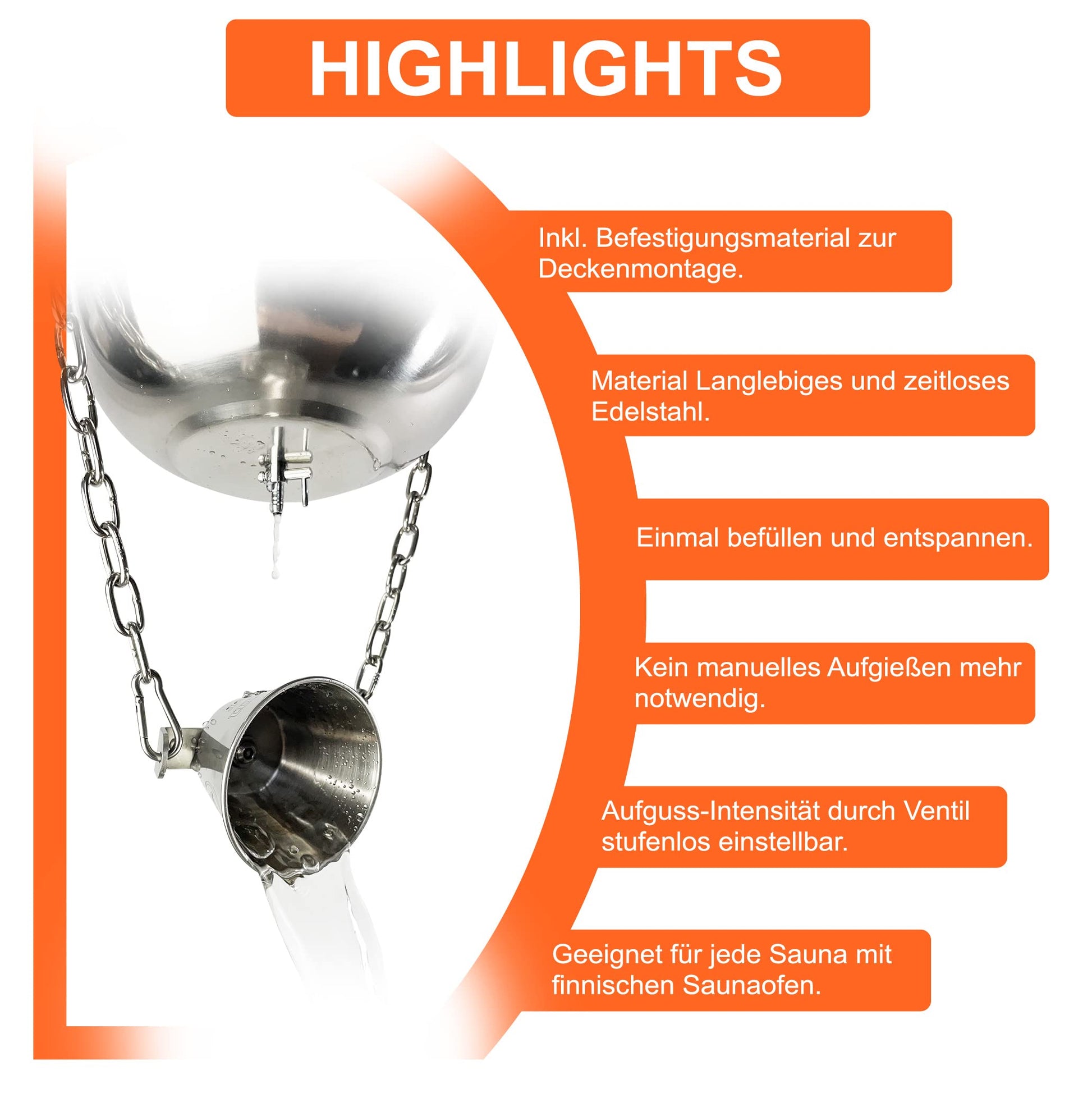 Komplettset zur einfachen Montage - inkl. Edelstahl-Hängekette & Schraubhaken für jede Heimsauna