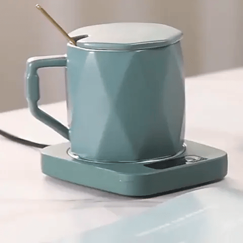 Coffee Gift Set Comprising of Beverage Warmer Plate and Coffee Mug | Heated Cup with Drink Warmer