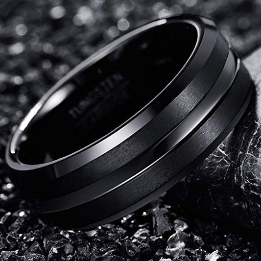 Tungsten carbide partner ring for men in black: Scratch-resistant (8mm - size 70-22.3)