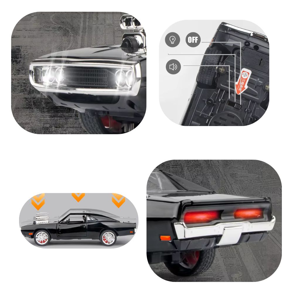 1970 Challenger model car (1:24) from 'Fast & Furious 7' with light and sound | Decorative gift (GIF2)