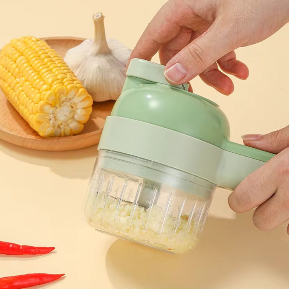 4-in-1 Wireless Electric Vegetable Cutter with USB Charging | Chopping, Slicing, Mixing and Peeling4-in-1 Wireless Electric Vegetable Cutter with USB Charging | Chopping, Slicing, Mixing and Peeling