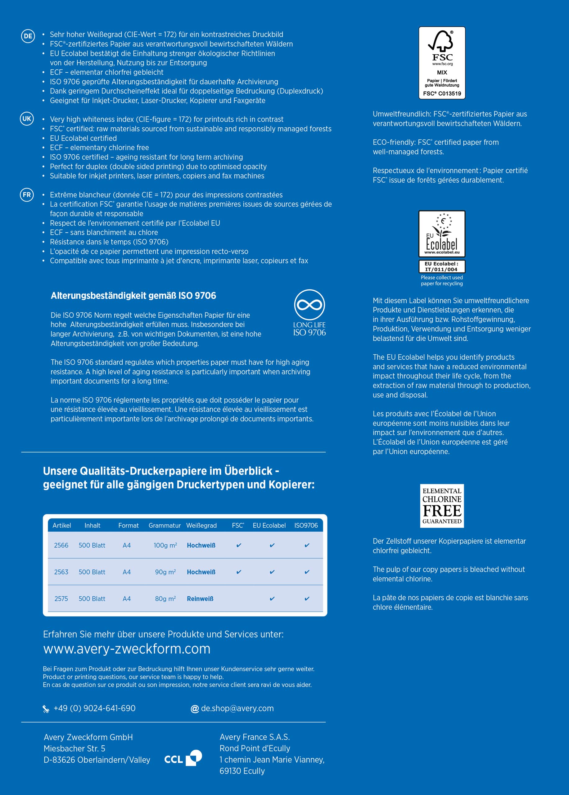 AVERY Zweckform (2563) printer/copy paper | 500 sheets, DIN A4 for all printers