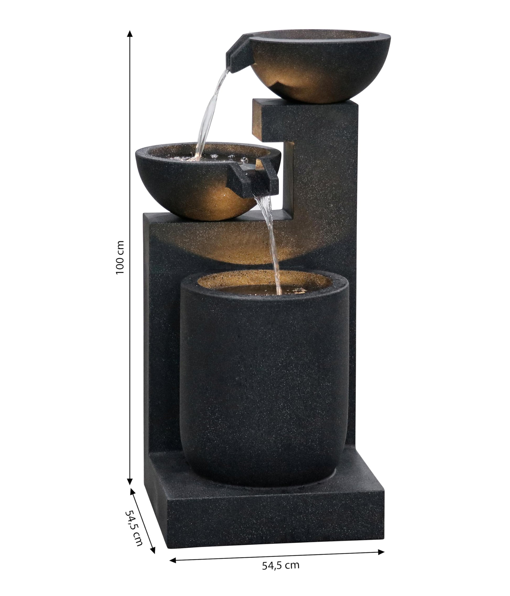 Dehner Samson Garden Fountain, Frost-Resistant Patio Fountain, Outdoor Fountain with LED Lighting, Approx. 100 x 54.5 x 54.5 cm, Polyresin, Black