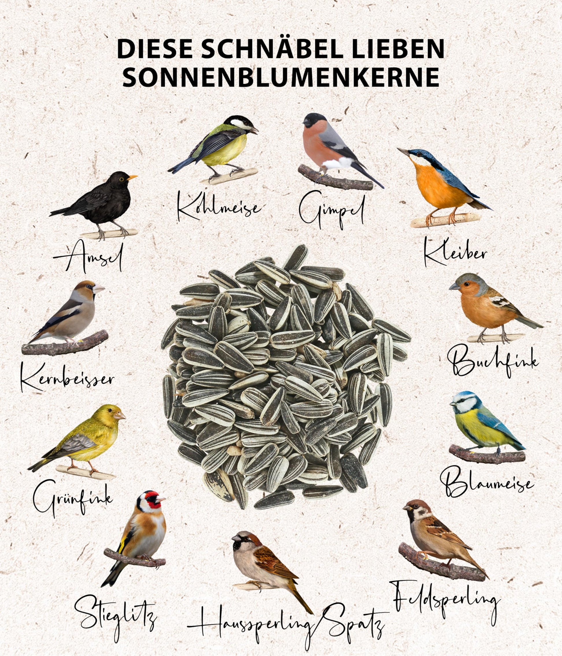 - Valuable supplementary food for all granivorous wild birds in the home garden