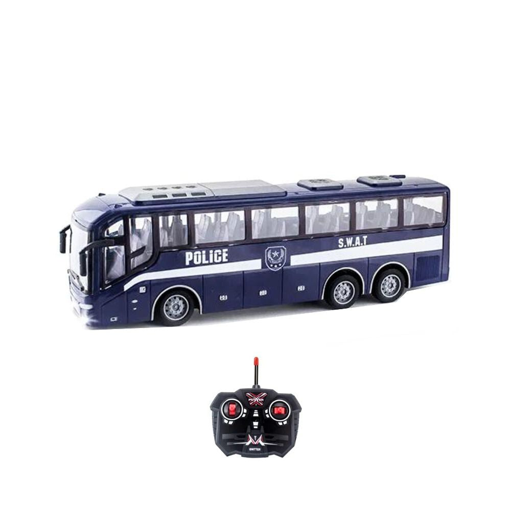 Dive into hours of fun with this remote-controlled tour bus at a 1:30 scale!
