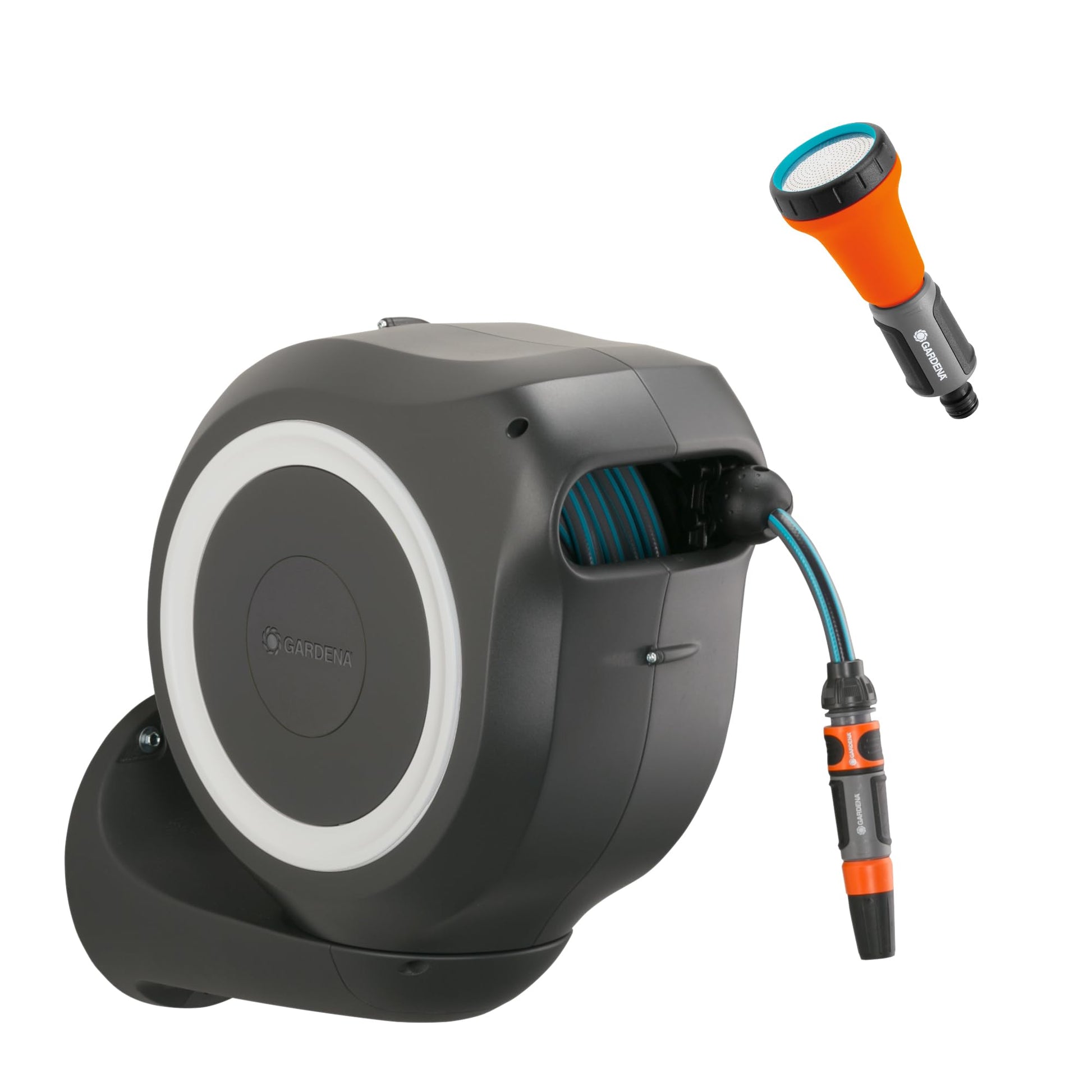 • Scope of delivery: 1x Gardena wall-mounted hose box, 1x watering spray, 1x 20 m quality hose (13 mm), 1x connecting hose, 1x sprayer, 1x wall bracket with screws and dowels