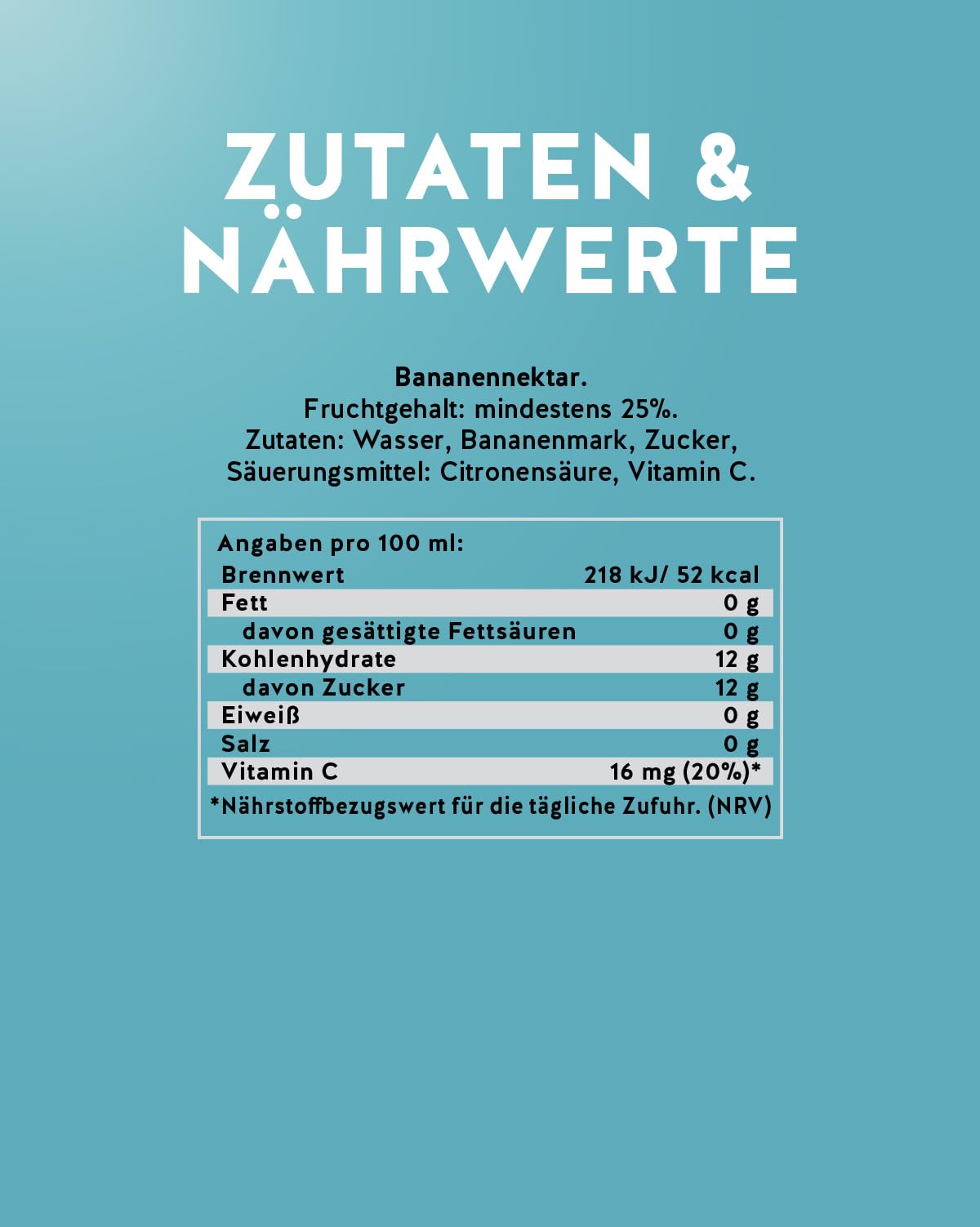 granini Banana Drink combines the natural flavor of real bananas with decades of fruit expertise. With at least 25% fruit content , vegan and free of animal additives, this drink offers an intensely fruity taste experience .