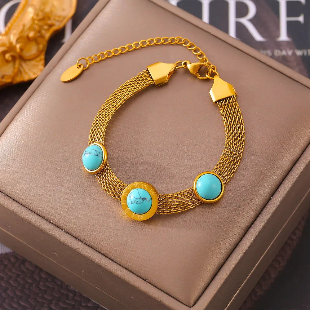 Luxurious Gold-Plated Titanium Stainless Steel Bracelet with Turquoise Pendant