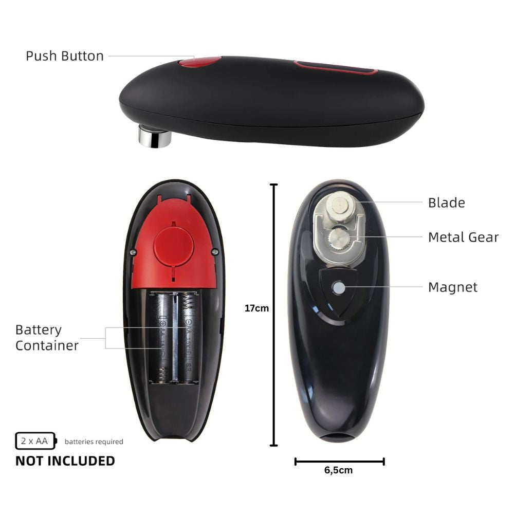 Convenient to use: With just the push of a button, the electric can opener opens any can effortlessly and stops automatically after opening. Suitable for cans of all sizes.