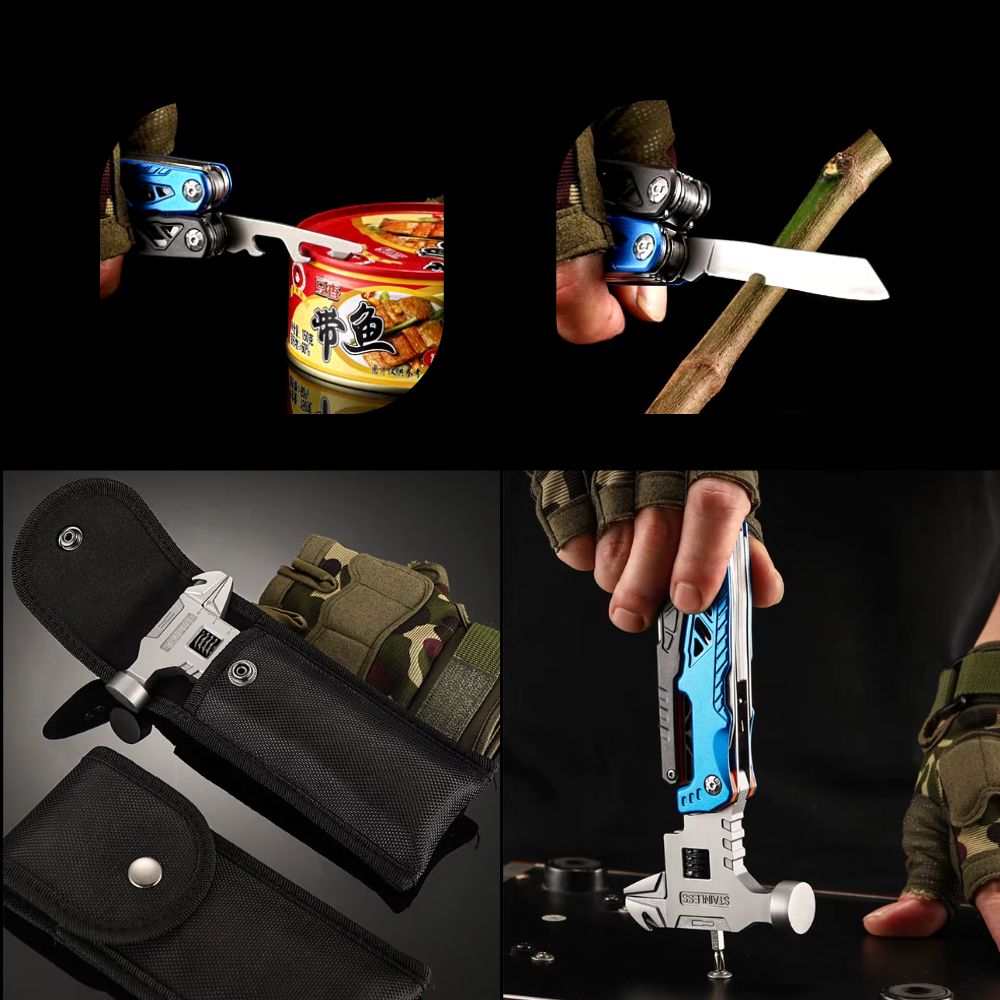 The outdoor multi-function tool is the perfect tool for outdoor adventures, workshop work and emergency situations.