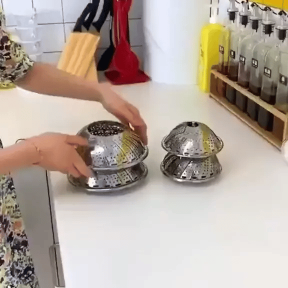 Stainless Steel Steamer | Mesh Vegetable Cooker: Expandable Kitchen Tool - Preview GIF