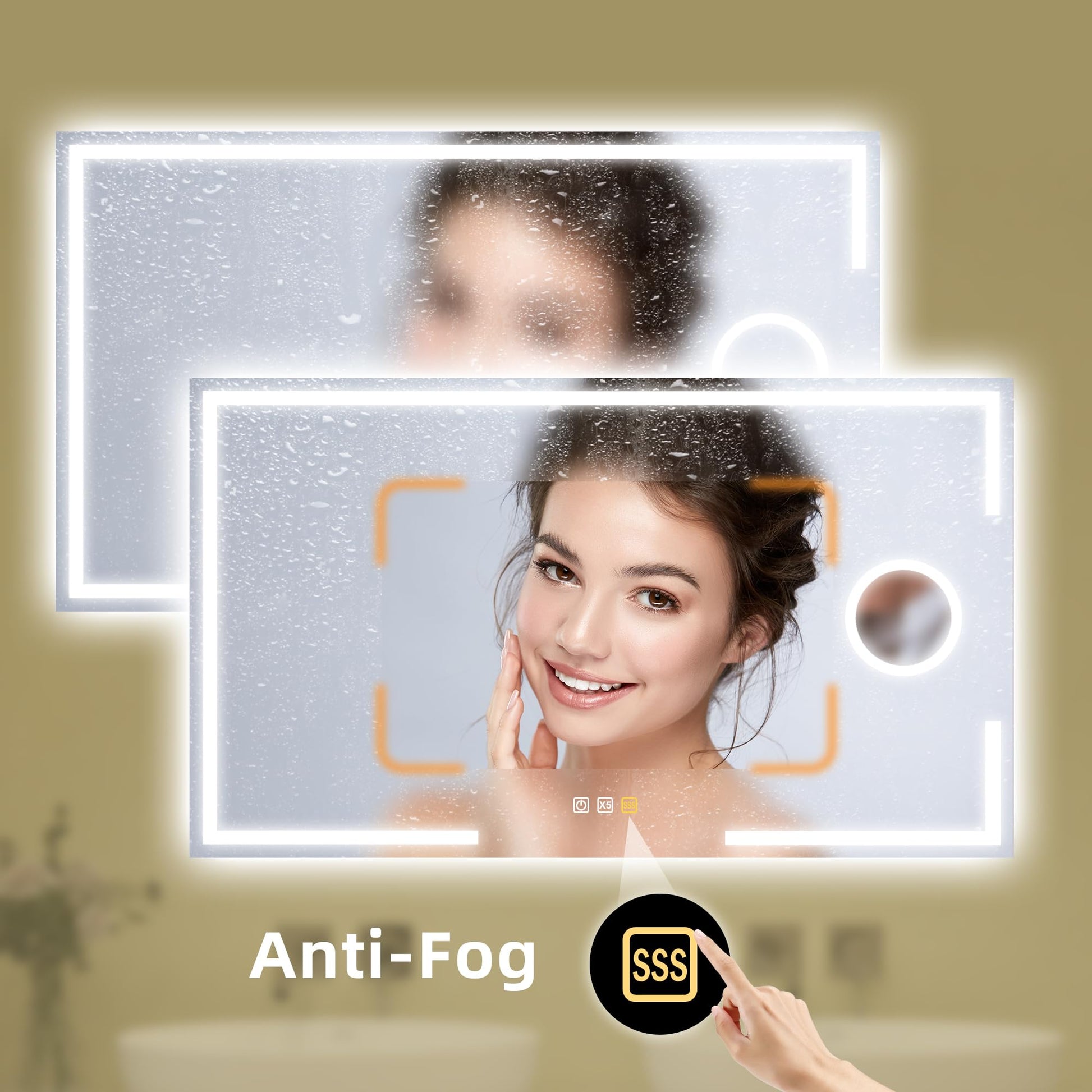 - 🌟【Anti-fog Function & Waterproof】The anti-fog function of the LED bathroom mirror can be individually controlled, which helps ensure that the center of the mirror always receives a clear, reflected image, allowing you to apply makeup immediately after bathing and saving time. The light bar is IP65 waterproof with a long service life of up to 50,000 hours. The mirror is IP44 waterproof, making it suitable for use in humid environments.