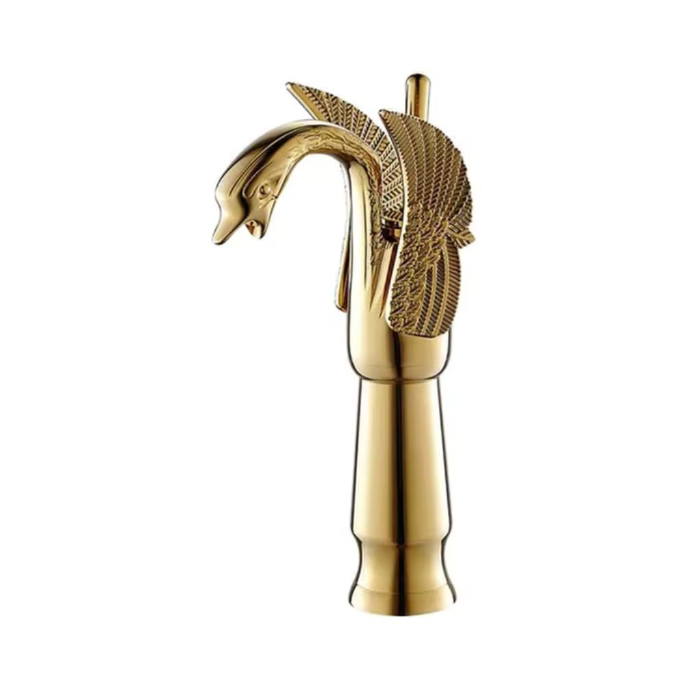 Experience pure elegance in your bathroom with this Luxurious Sink Faucet featuring a unique Swan Design. Available in the elegant finishes of Gold, Chrome, and Antique, this faucet seamlessly integrates into any bathroom decor.