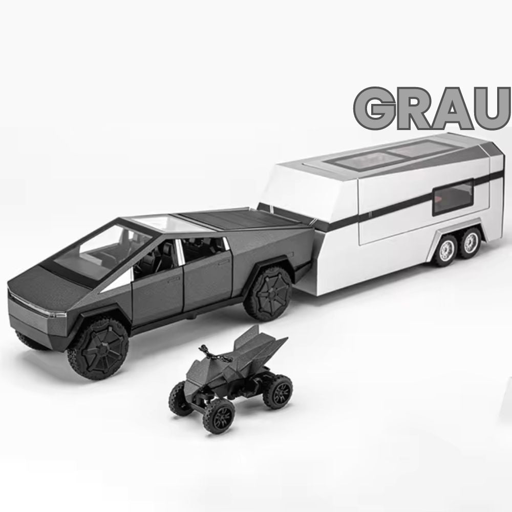 Discover the TESLA Cybertruck model car with trailer and beach motorcycle - a must-have for every car enthusiast, young and old!