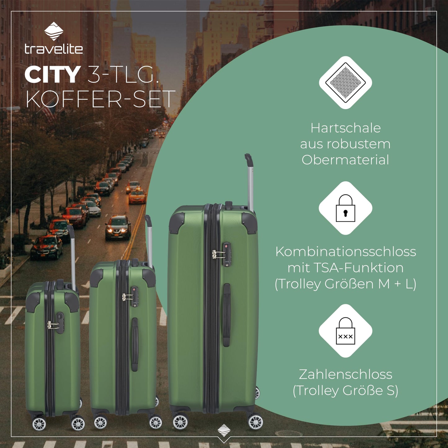 TRAVELITE hard-shell travel suitcase set with TSA lock + expansion pleat: scratch-resistant