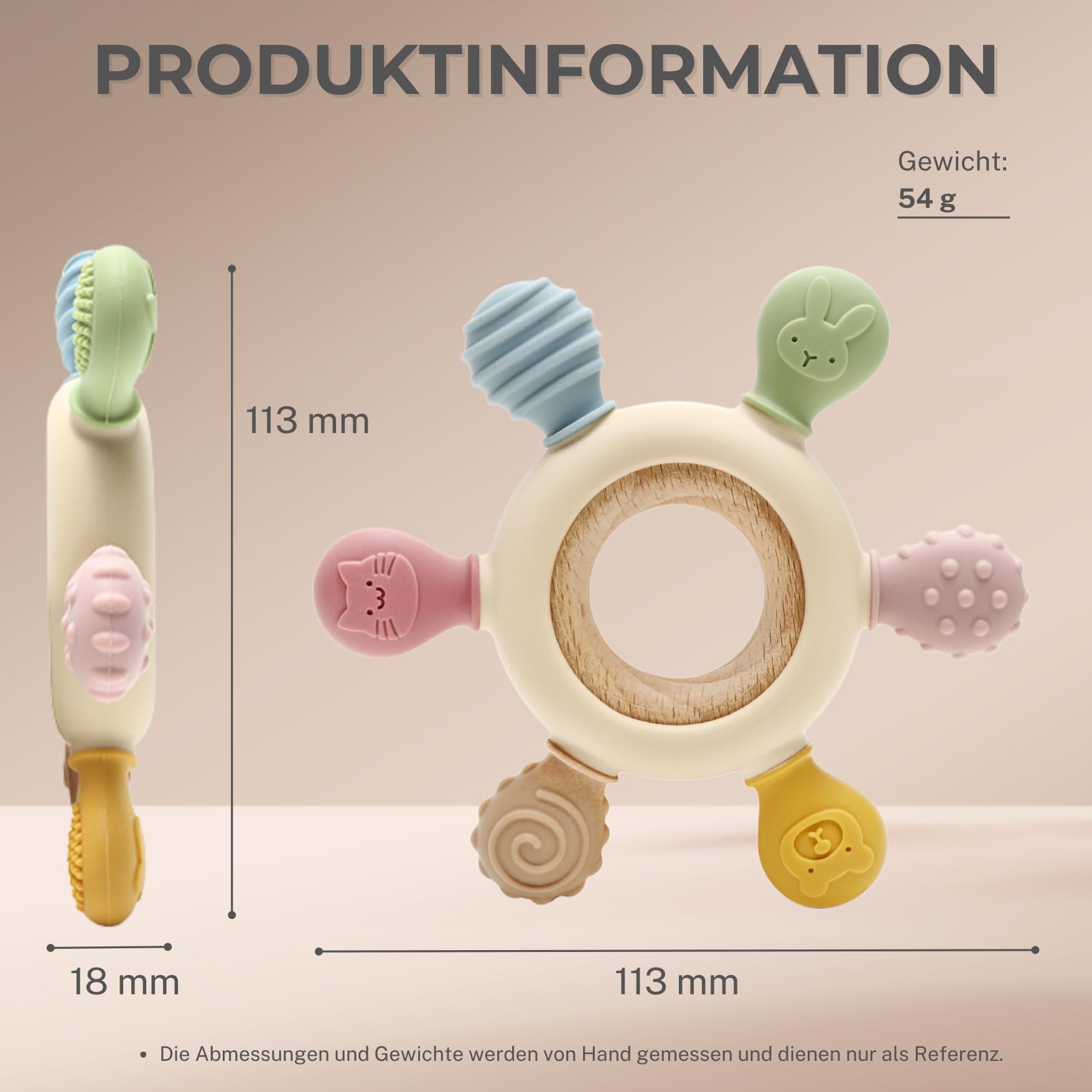 Baby Beißring für Zahnungshilfe aus Silikon & Holz: BPA-frei, Sicheres Spielzeug