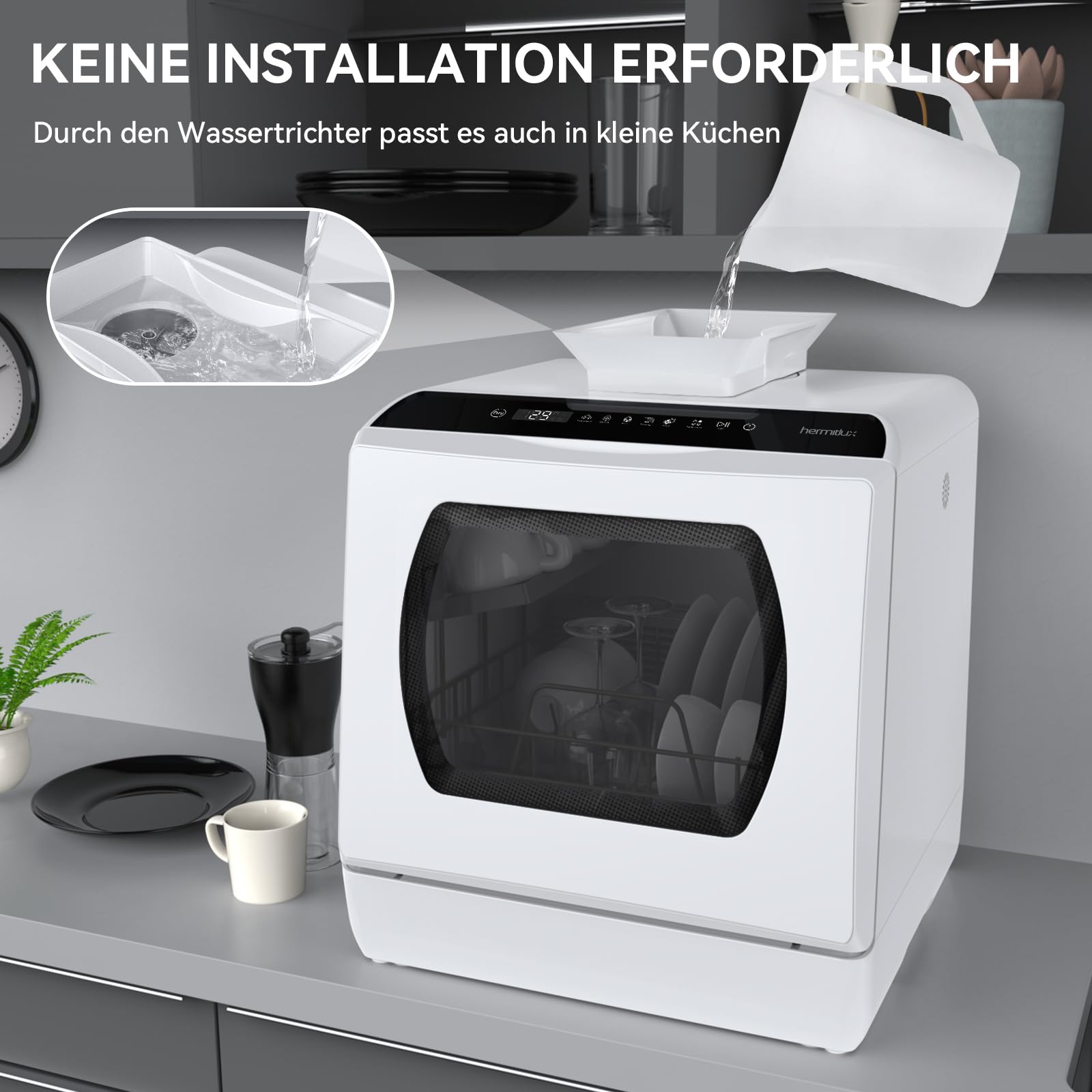 Hermitlux Mini-Geschirrspüler für 4 Bestecksätze, 5 Liter Wassertank, 6 Programme