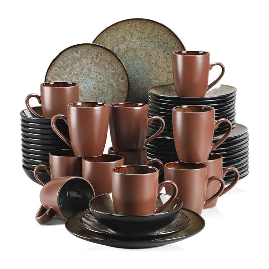VANCASSO BUBBLE Service de table vintage en céramique 48 pièces | Assiettes, bols et tasses en marron