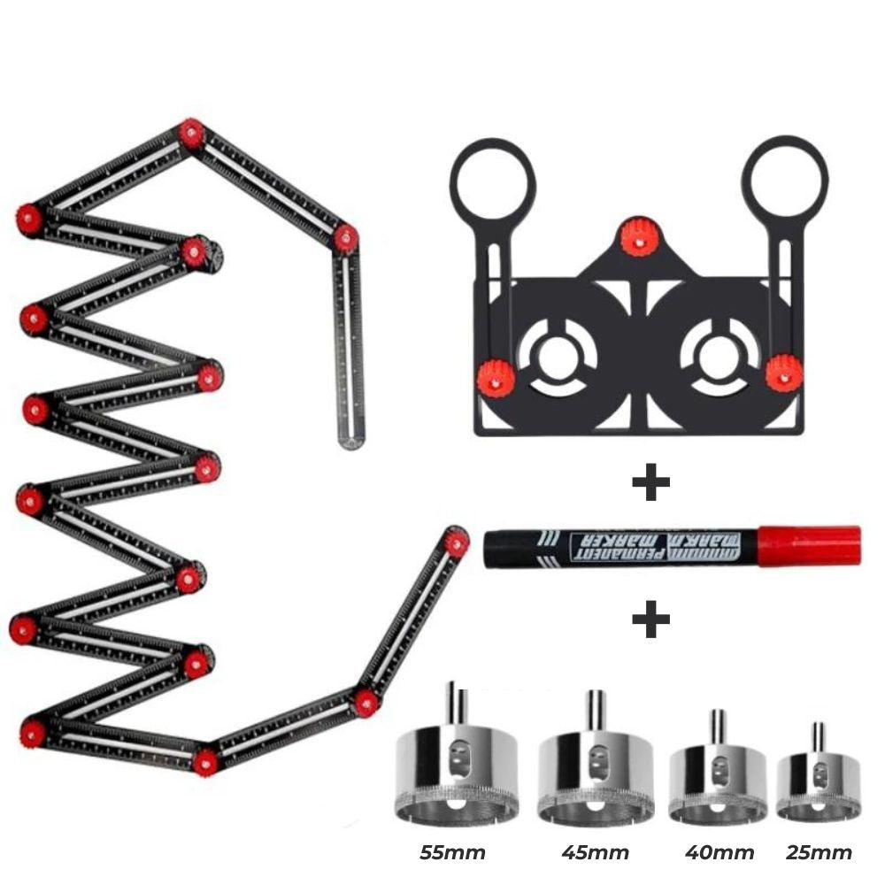 Règle de mesure multi-angles à 16 côtés avec positionneur d'ouverture | Comprend un marqueur et des accessoires de perçage à 4 trous2
