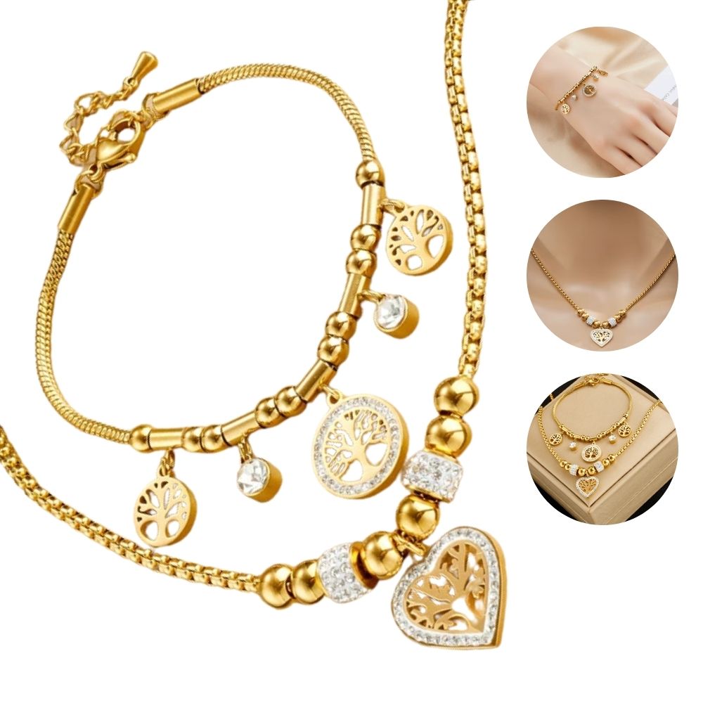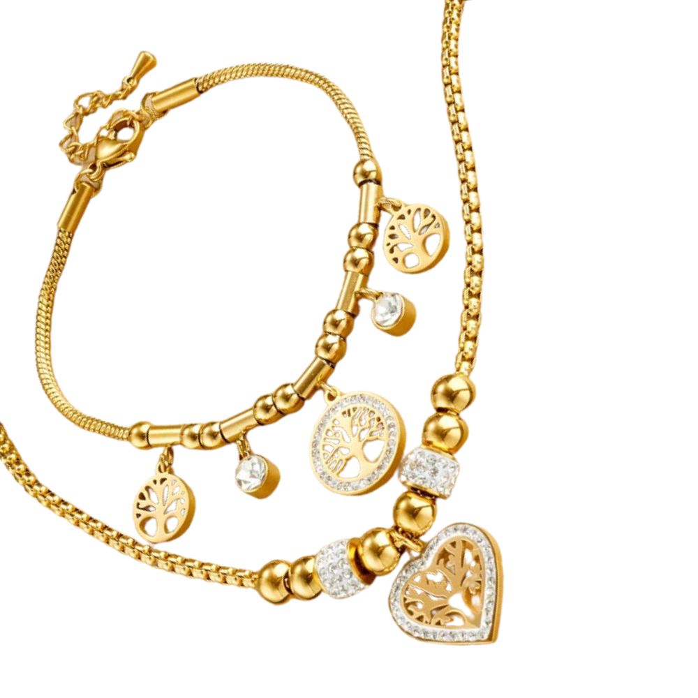 Coffret cadeau de bijoux en acier inoxydable 316L pour femme : collier et bracelet avec pendentif cœur et arbre de vie