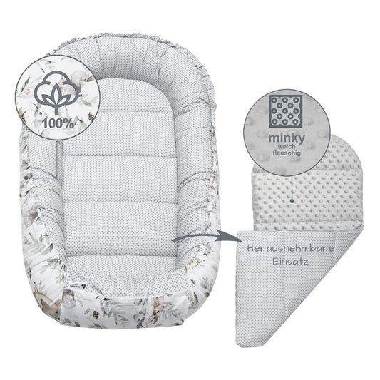 Medi Partners Baby-Nestchen für Neugeborene aus 100% Baumwolle (100x60x15cm): Eulen-Motiv