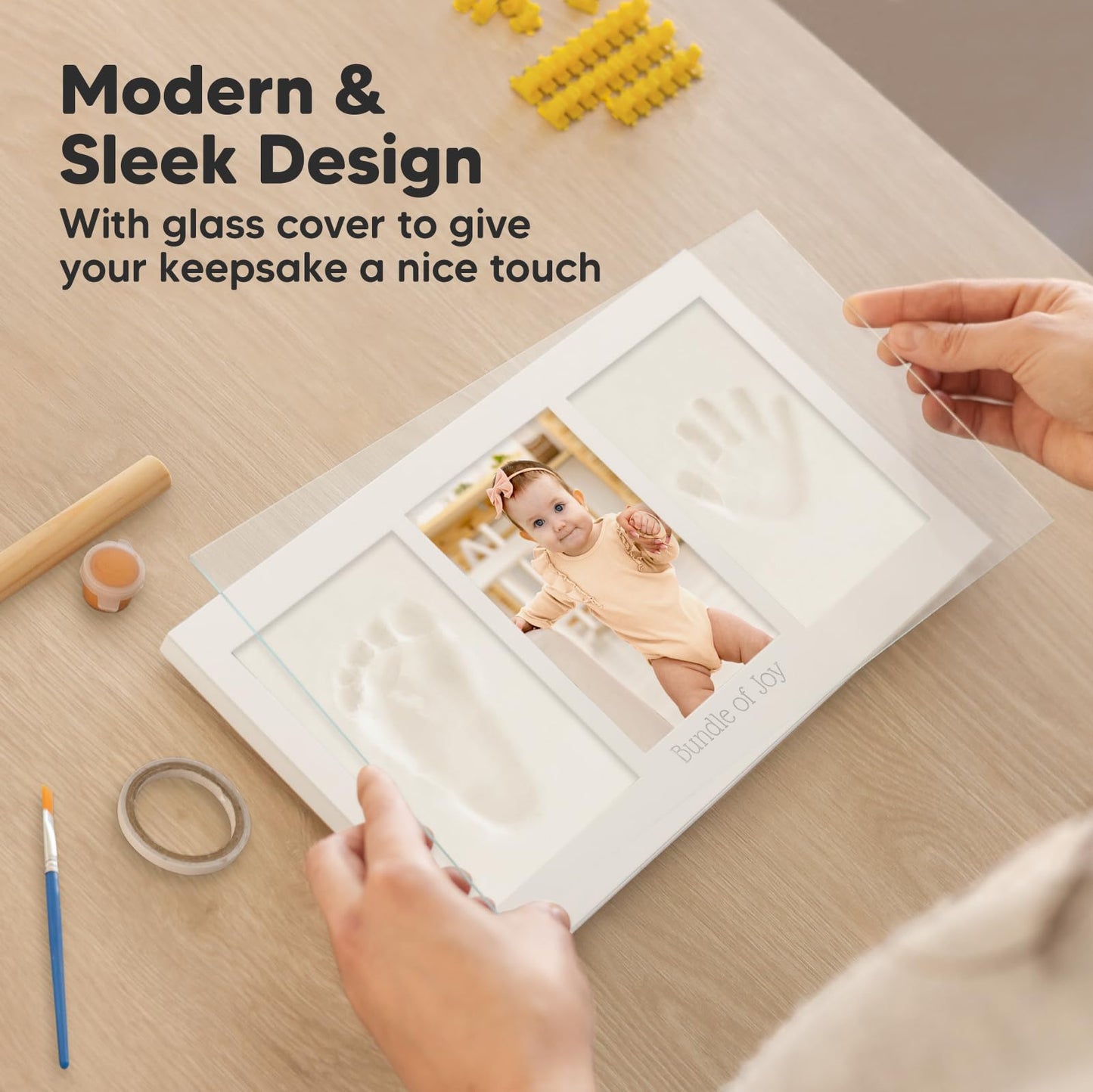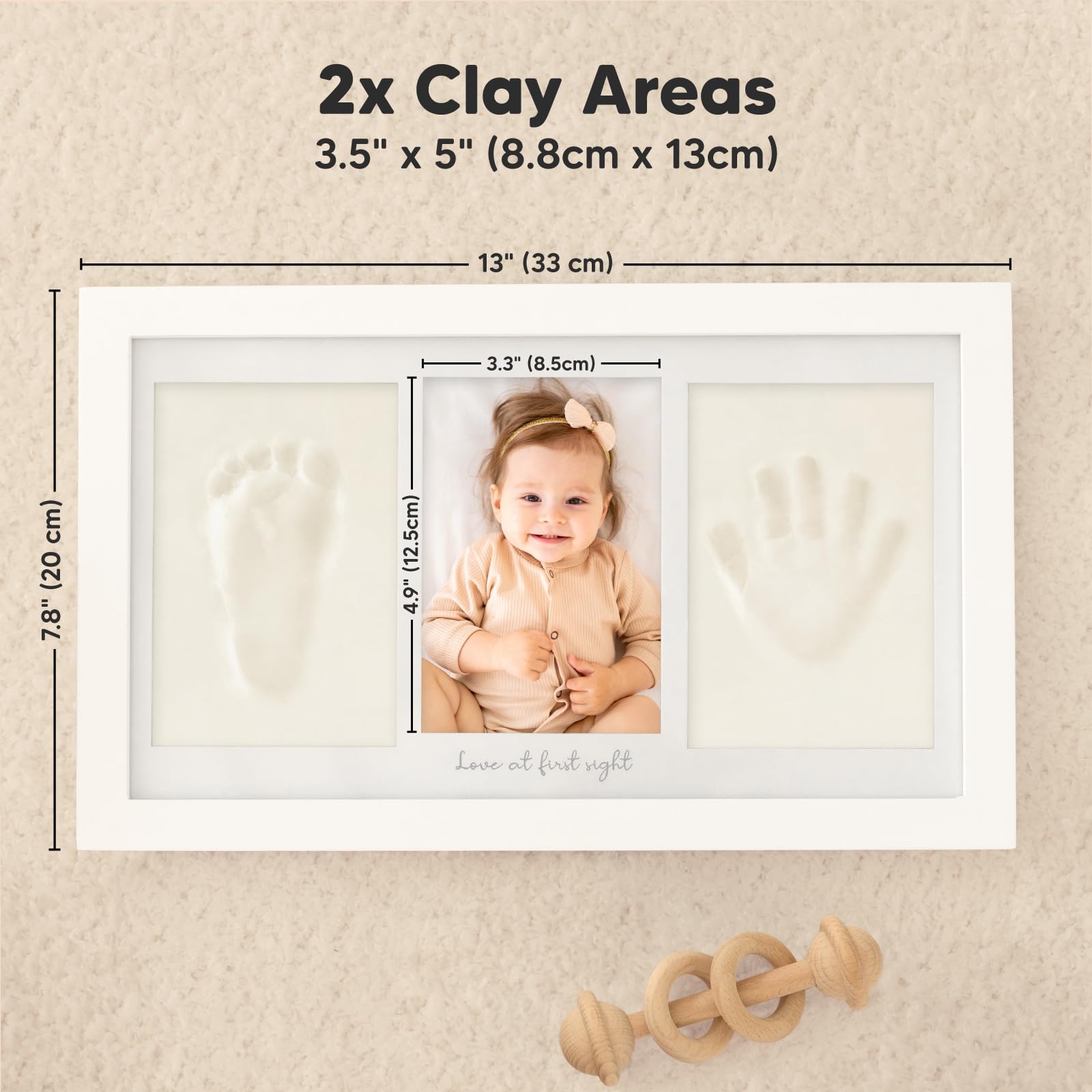 Mit lebensmittelechtem, sicherem Ton - perfekt für zarte Babyhände und -füße. Der stabile Holzrahmen mit Echtglas sorgt für langlebige Qualität in stilvollem Alpine White. Ob zur Babyparty oder als Geschenk zur Geburt - dieses Set hält die schönsten ersten Momente für immer fest.