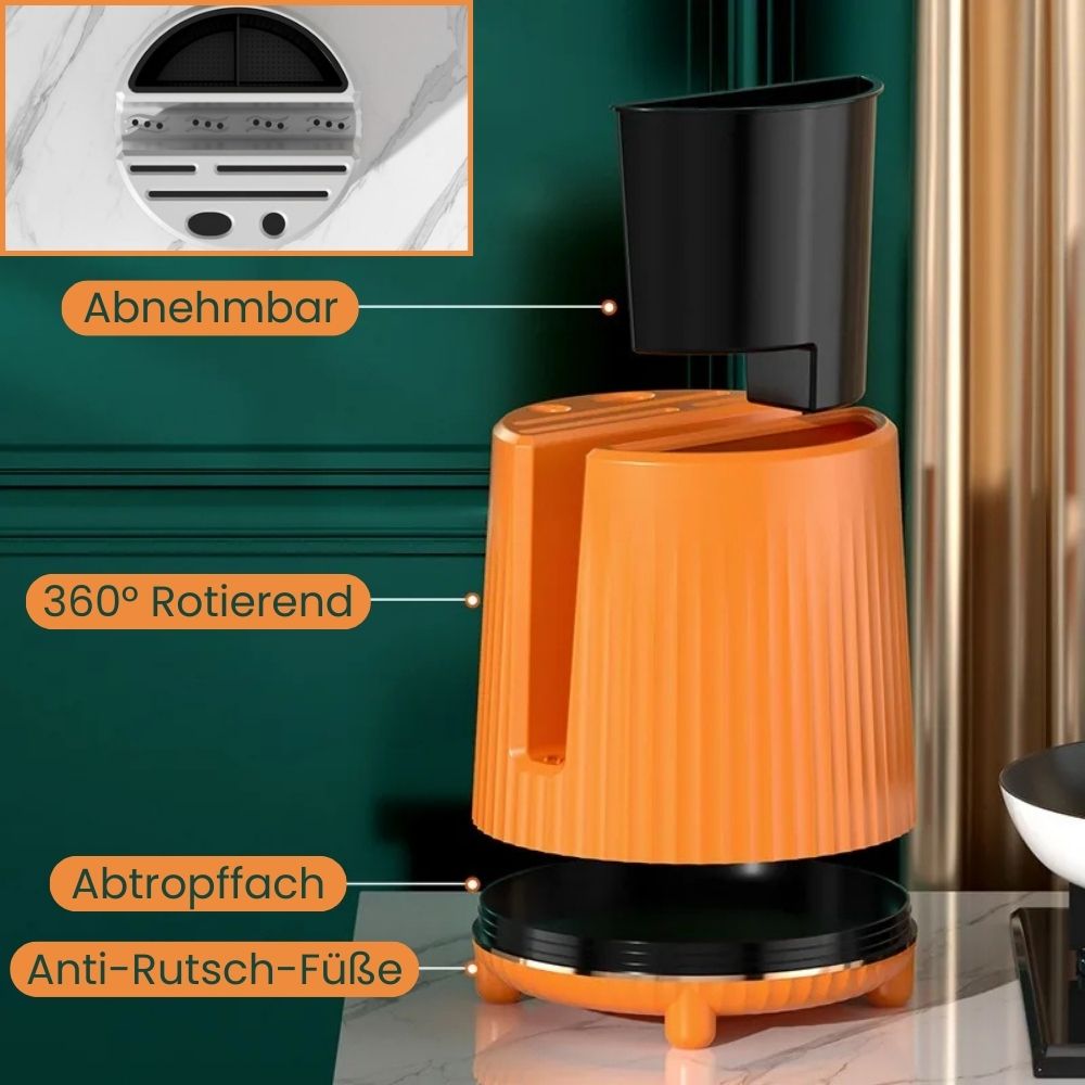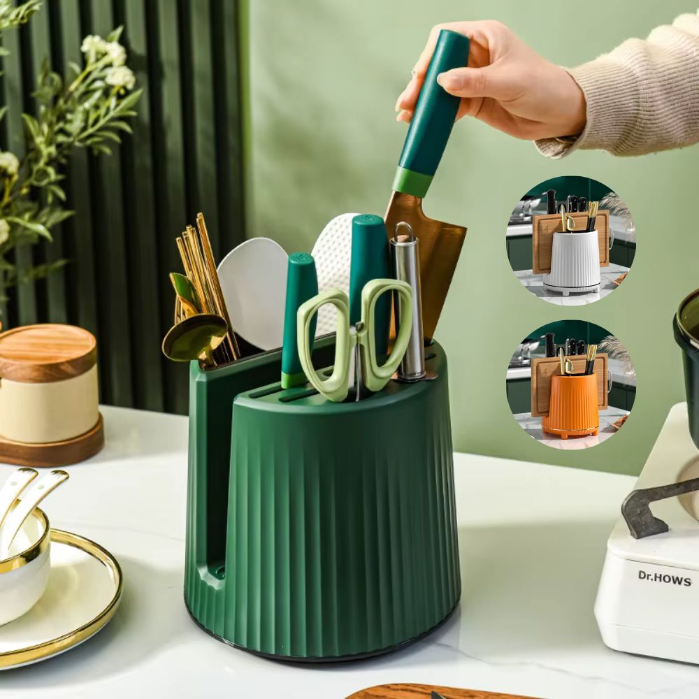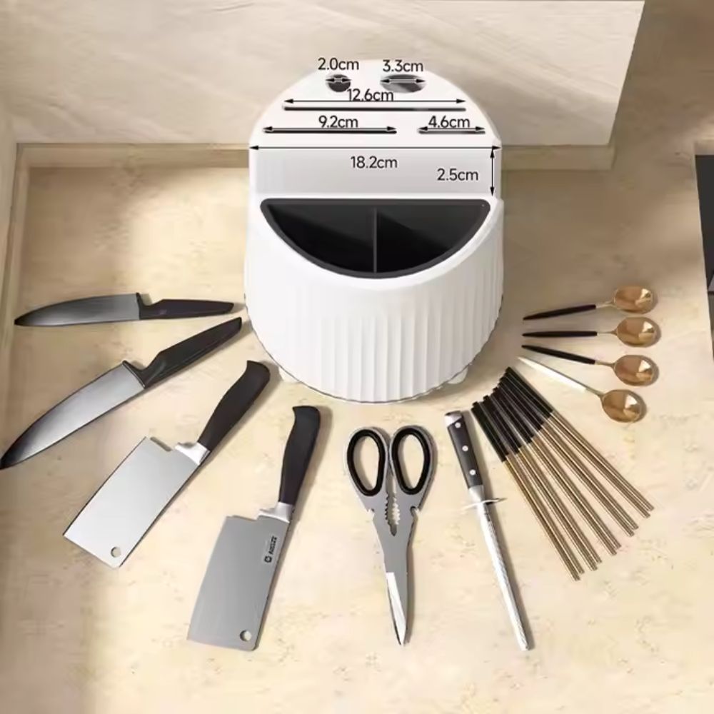 Drehbarer Messer- & Utensilienhalter mit Schneidebrettfach | Multifunktionaler Küchen-Organizer für Besteck (GIF2)