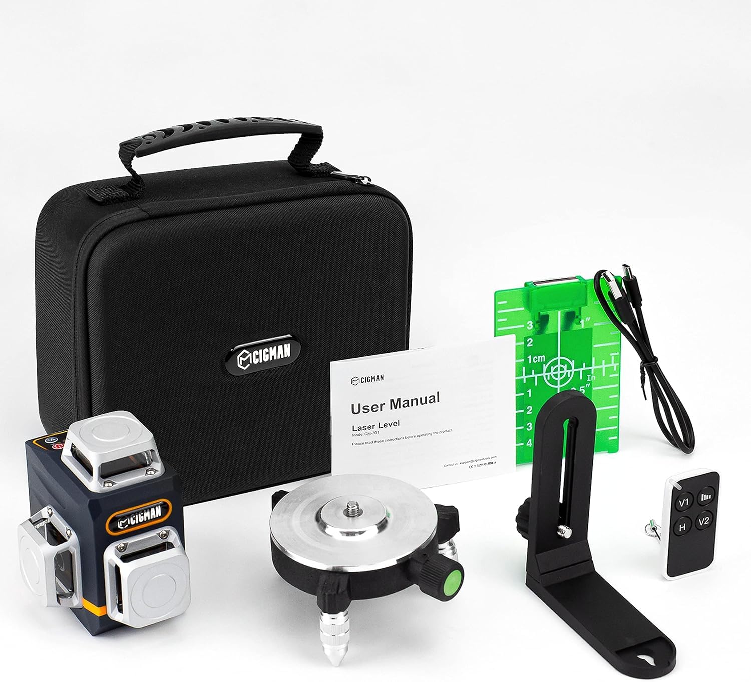 Kreuzlinienlaser, CIGMAN (3x360 Grad) Grün: Selbstnivellierend Laser Wasserwaage, Baulaser