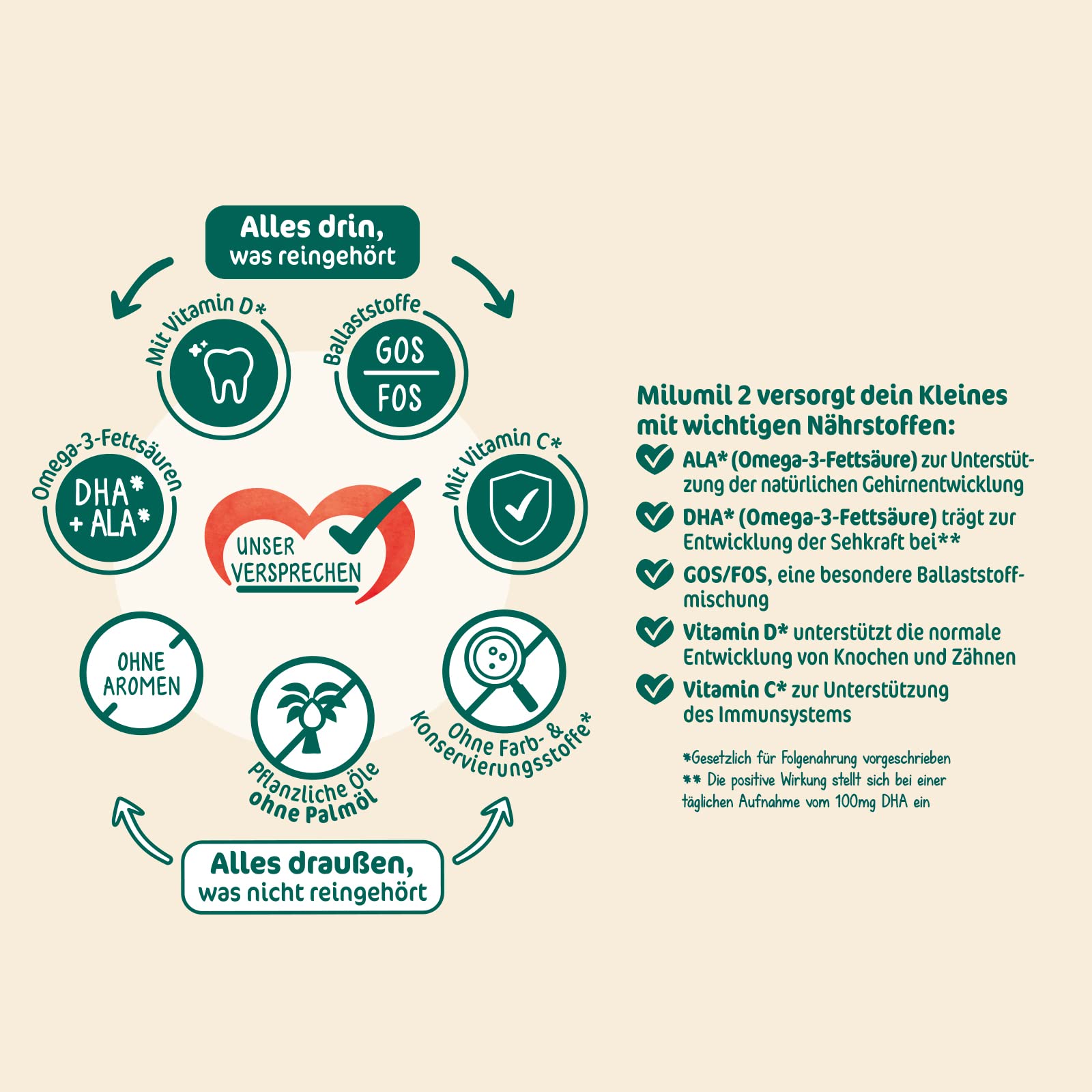 Milupa Milumil 2 ist eine ideale Folgemilch für Babys ab dem 6. Monat, die perfekt zur Beikost passt.