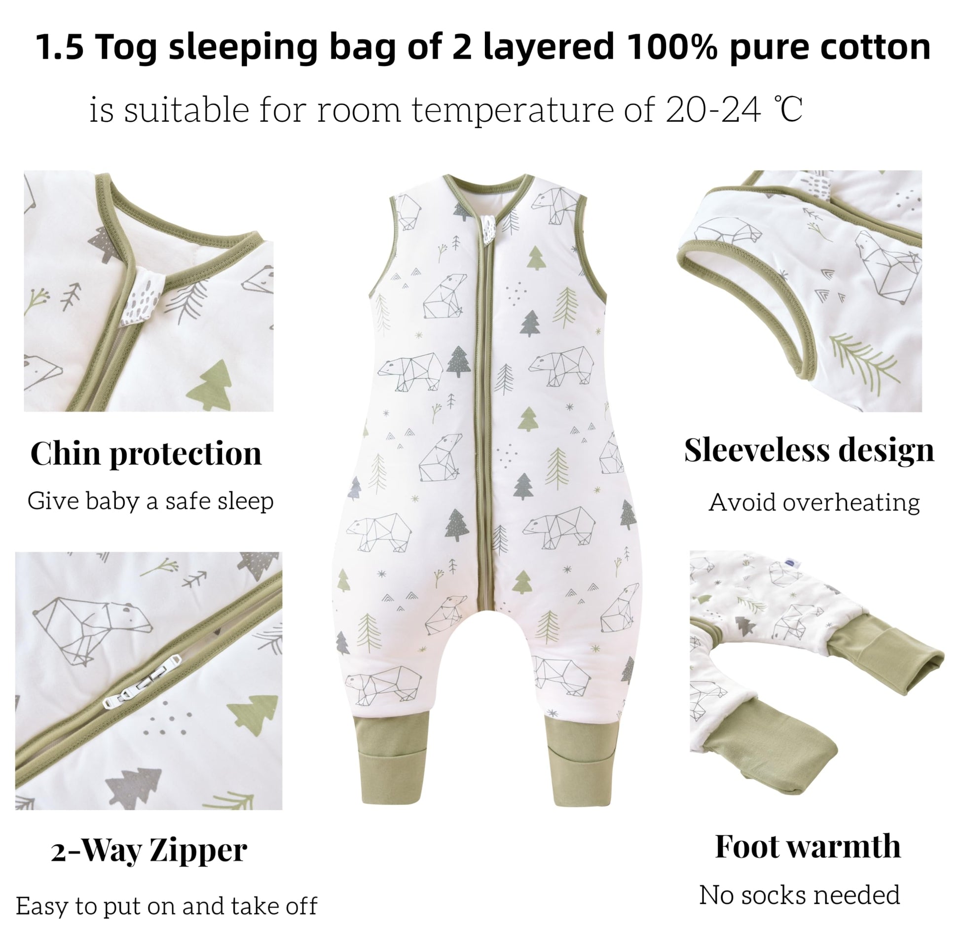 Chilsuessy (2er Pack) Baby Schlafsack mit Beinen, 1.5 Tog | 100% Baumwolle, Ganzjahr