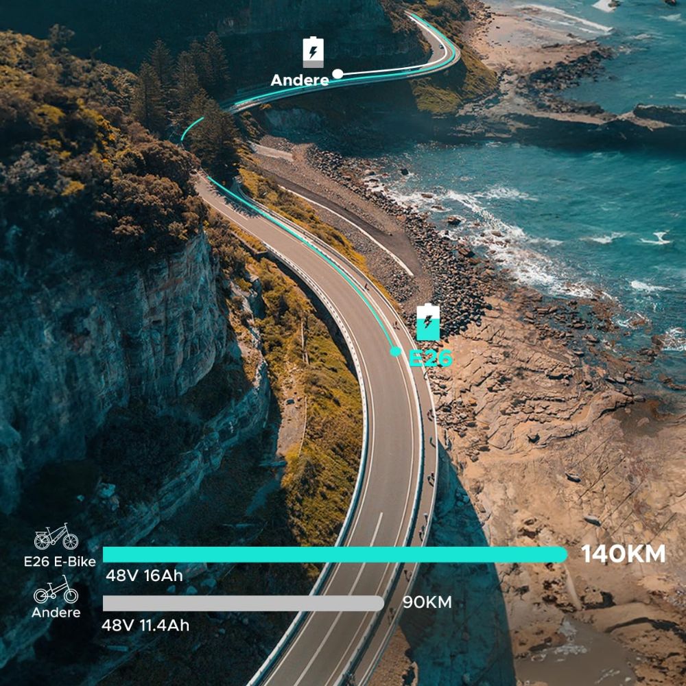 Akku & Reichweite: 48V 16Ah Lithium-Ionen-Akku, bis zu 150km (Assistenzmodus)