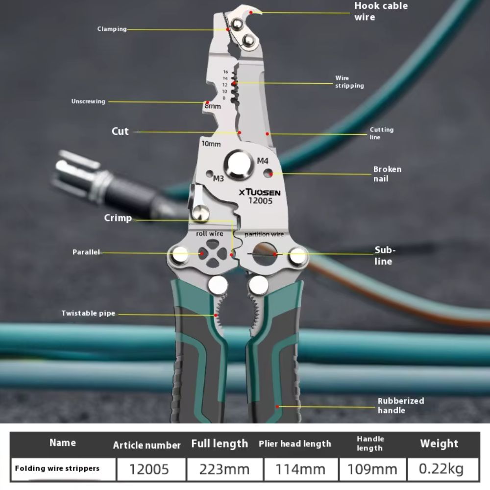 17-in-1 Multifunktionale klappbare Elektriker-Zange | Schneiden, Abisolieren, Pressen & Ziehen etc.