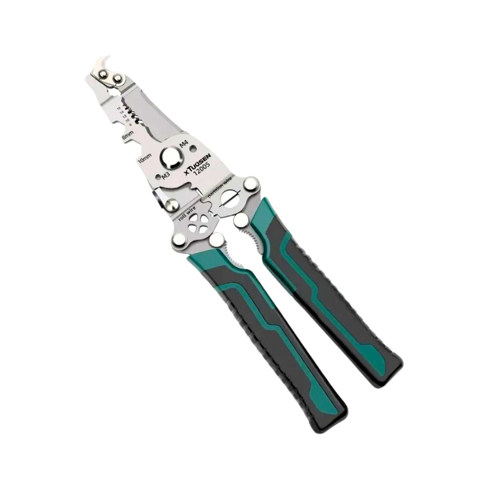 Alles in einem Werkzeug: Schneiden, Abisolieren, Crimpen und Ziehen - diese vielseitige Zange ist der perfekte Begleiter für Elektriker, Elektrotechniker und Heimwerker.