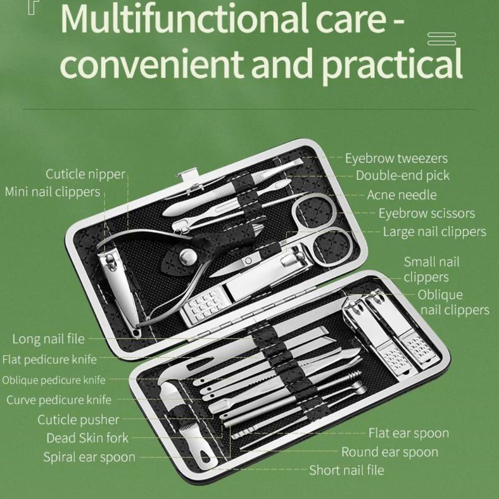 Tauchen Sie ein in puren Luxus mit unserem 19-teiligen Edelstahl-Maniküre-Set!