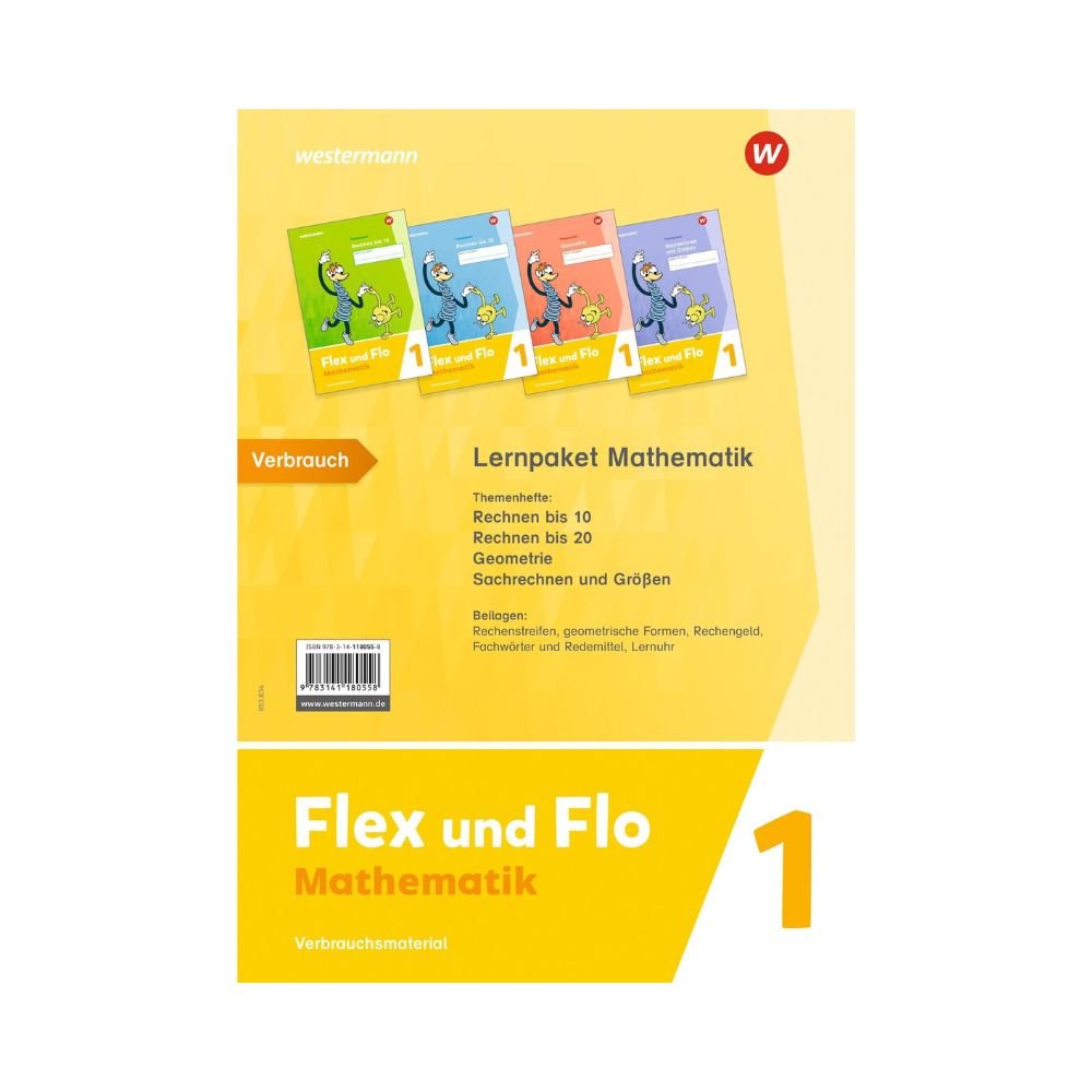Das Flex und Flo Lernpaket Mathematik 1 (Verbrauchsmaterial) enthält die Themenhefte Rechnen bis 10, Rechnen bis 20, Geometrie 1, Sachrechnen und Größen 1 als Verbrauchsmaterial und folgende Beilagen: Rechenstreifen - Geometrische Formen - Rechengeld Fachwörter und Redemittel 1 - Lernuhr...