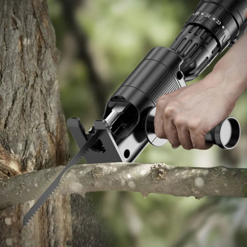 Umwandlungskunst: Verwandeln Sie Ihre Elektrobohrmaschine mühelos in eine leistungsstarke Säbelsäge. Dieser Adapter ist mit den meisten Elektrobohrmaschinen kompatibel und erweitert Ihr Werkzeugset um eine neue Dimension.