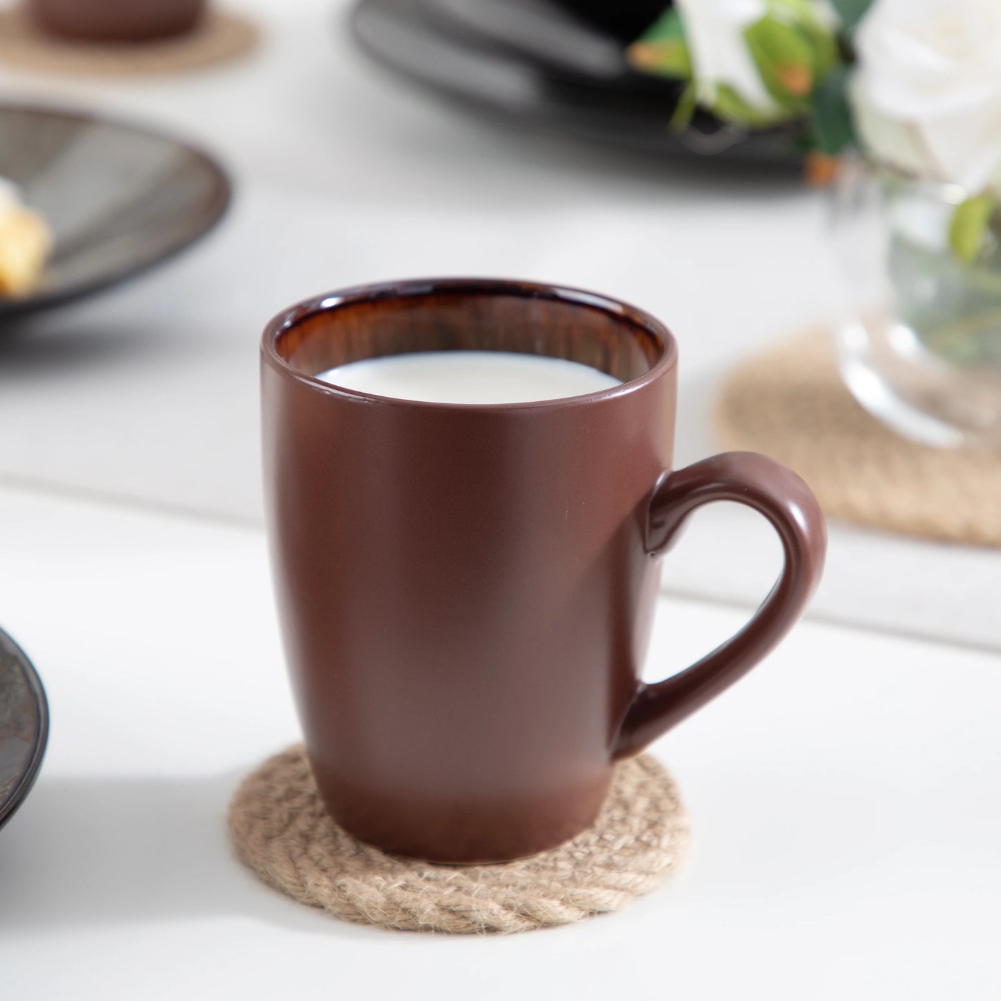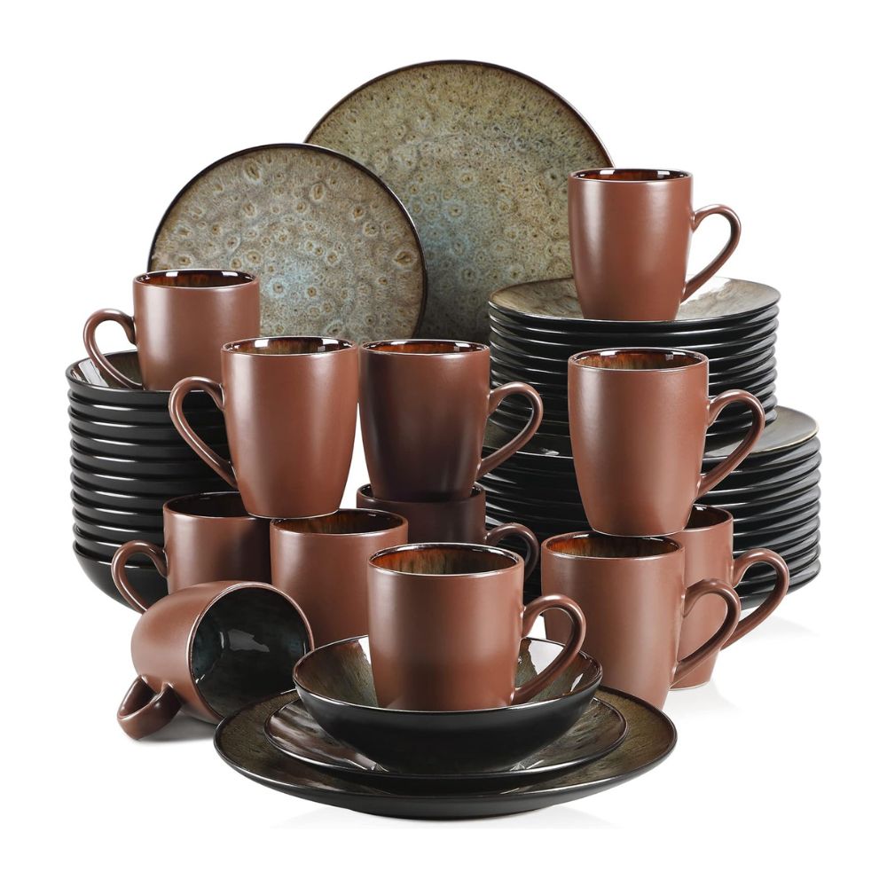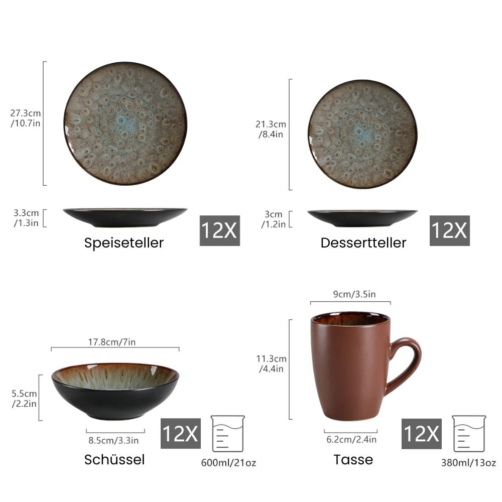 VANCASSO BUBBLE 48-teiliges Vintage Keramik-Geschirrset | Teller, Schalen & Tassen in Braun