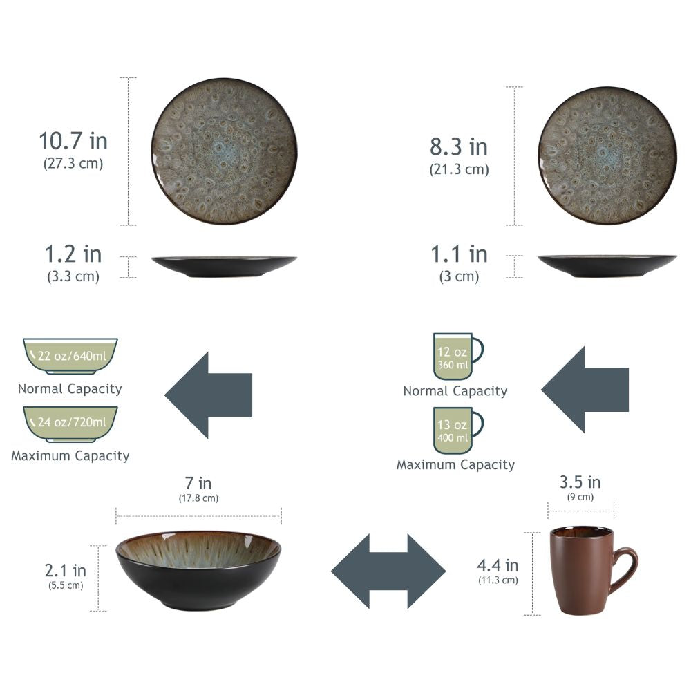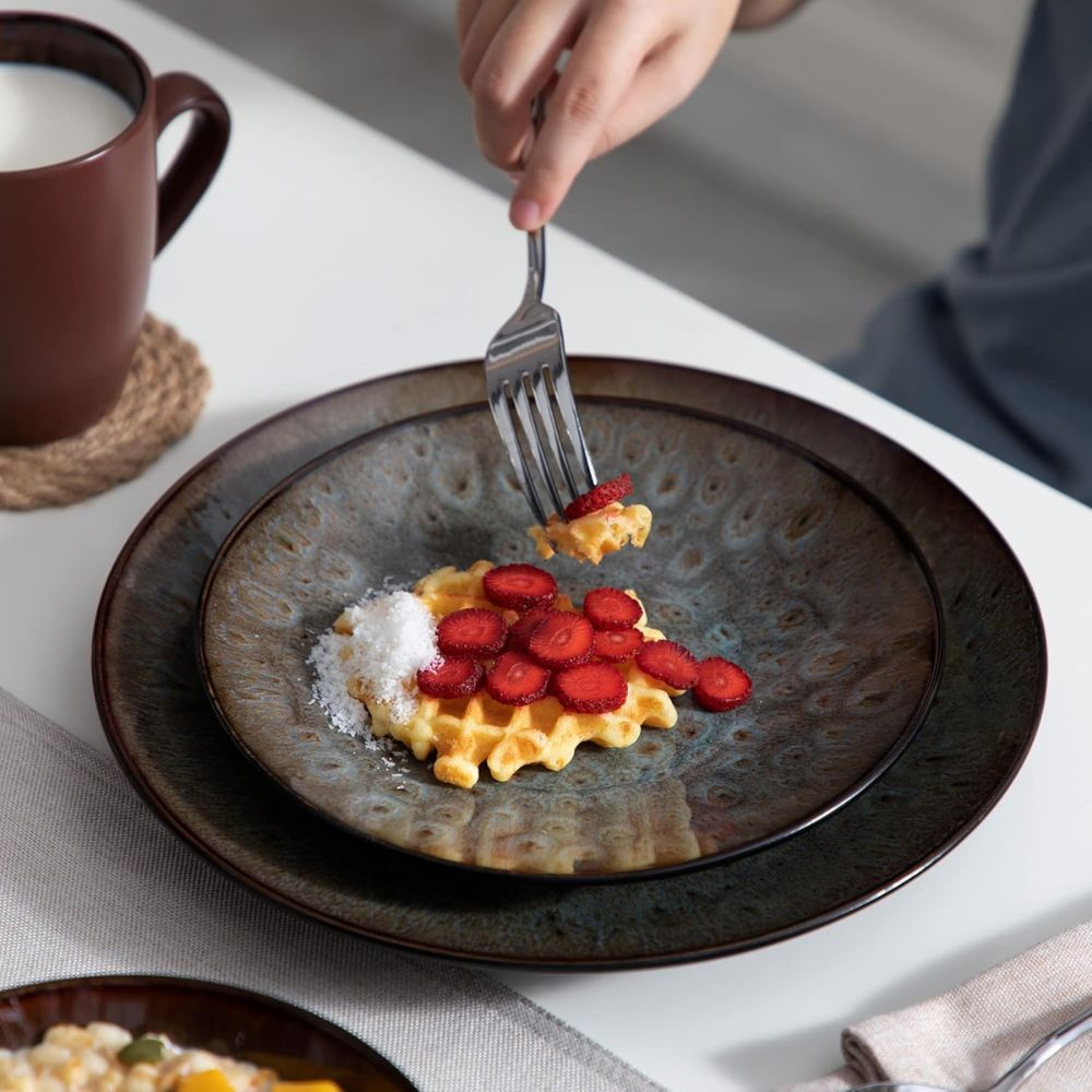 Hergestellt aus hochwertigem und umweltfreundlichem Steinzeug, ist das Geschirrset: