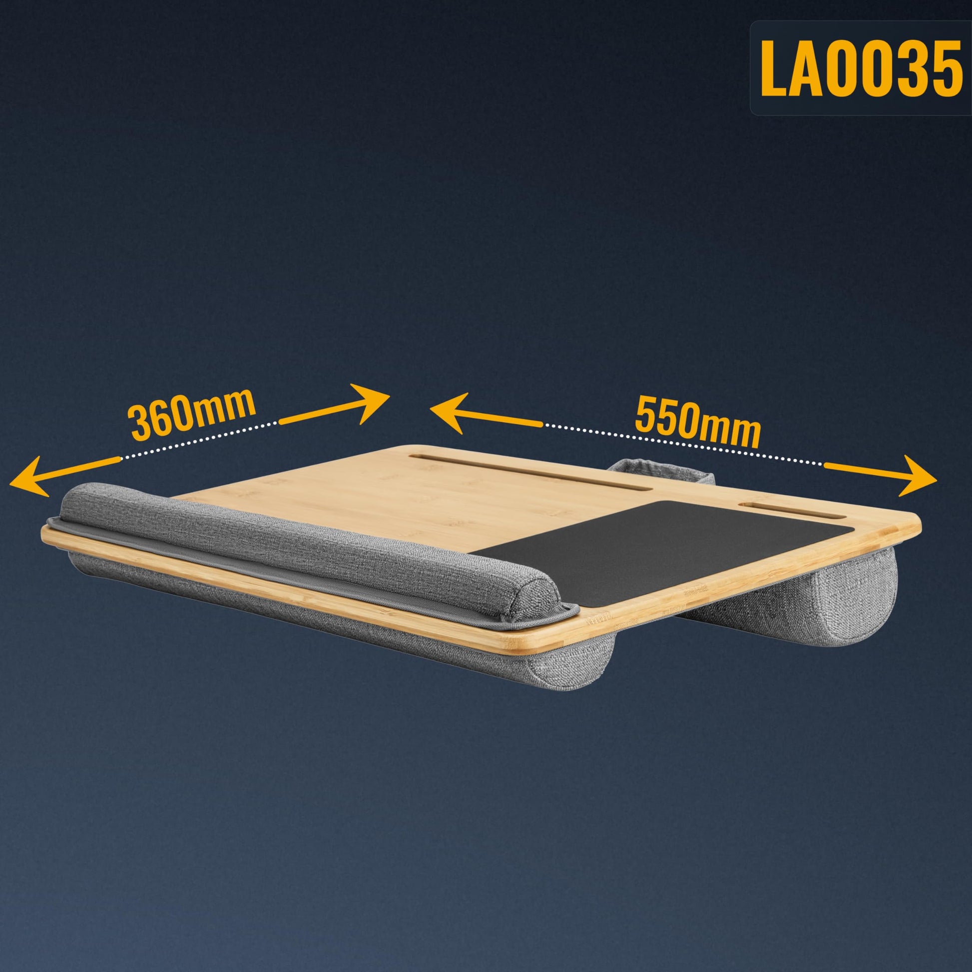 - ERGONOMISCH: Das Polster auf der Platte dient als Handgelenkstütze. Mit dem weichen Kissen an der Unterseite können Sie die Laptop Erhöhung auch über einen längeren Zeitraum auf Ihrem Schoß platzieren.